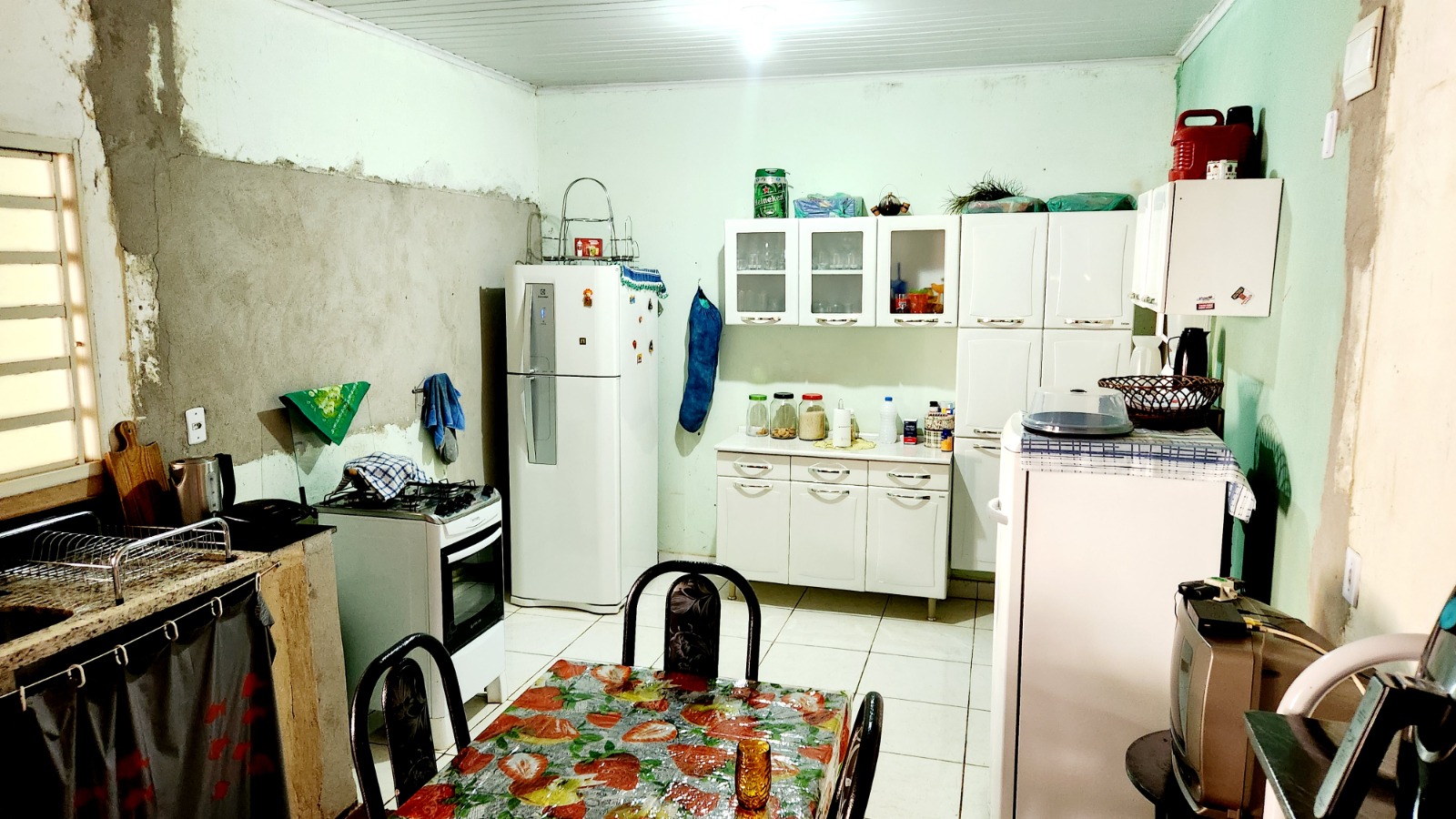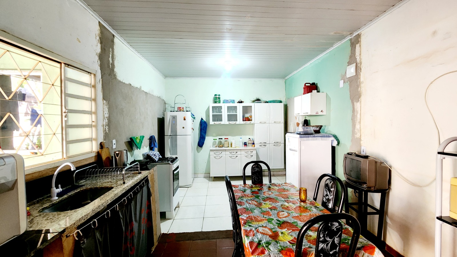 DESCRIÇÃO: – 3 QUARTOS, – SALA – COZINHA – BANHEIRO SOCIAL – ÁREA DE SERVIÇO – GARAGEM COBERTA – QUINTAL – KIT COM 3 COMODOS.