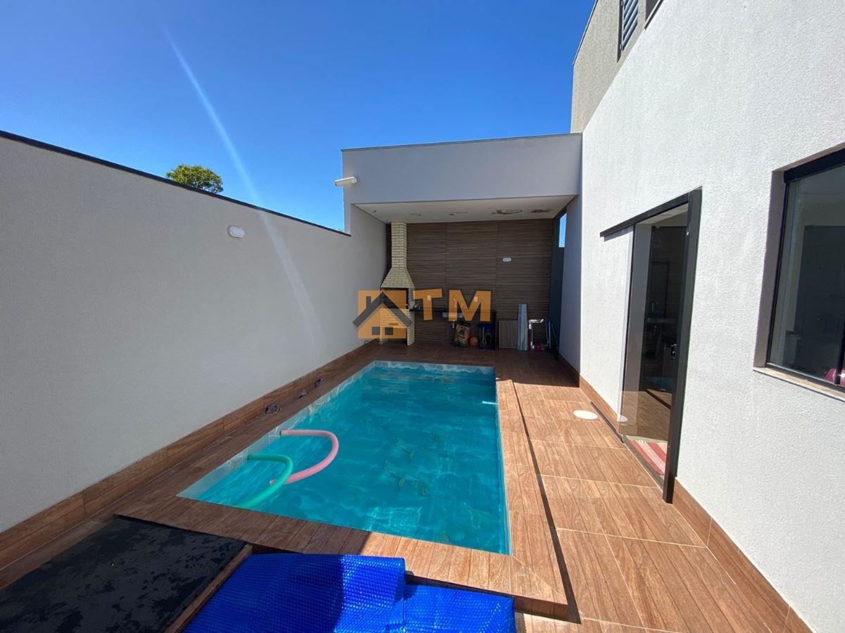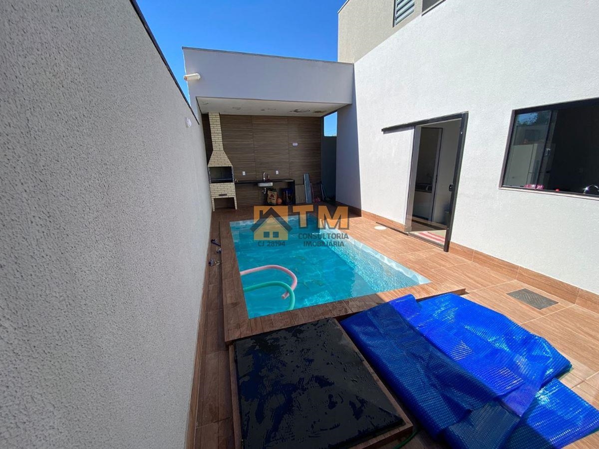 EXCELENTE CASA, FINO ACABAMENTO, COM PISCINA, CONDOMINIO, JARDIM EUROPA, JARDIM BOTANICO. DESCRIÇÃO: – 3 Suítes; – Sala ampla com pé direito Duplo – Cozinha americana com armários planejados – Área de serviço – Dispensa – Iluminação em Led – Piso em porcelanato – Garagem – Faixada Moderna – Na Área externa, possui banheiro com pia em granito – Piscina – Churrasqueira – Lote com 280 metros * CONDOMINIO JARDIM EUROPA – Todo Murado – Portão Eletrônico com controle Remoto – Água – Energia – Bloquetado – Fácil acesso, perto do Condomínio Ouro Vermelho II
