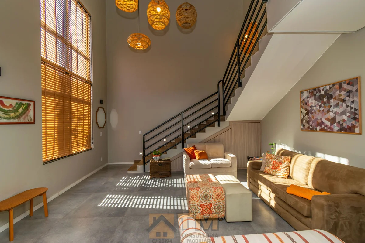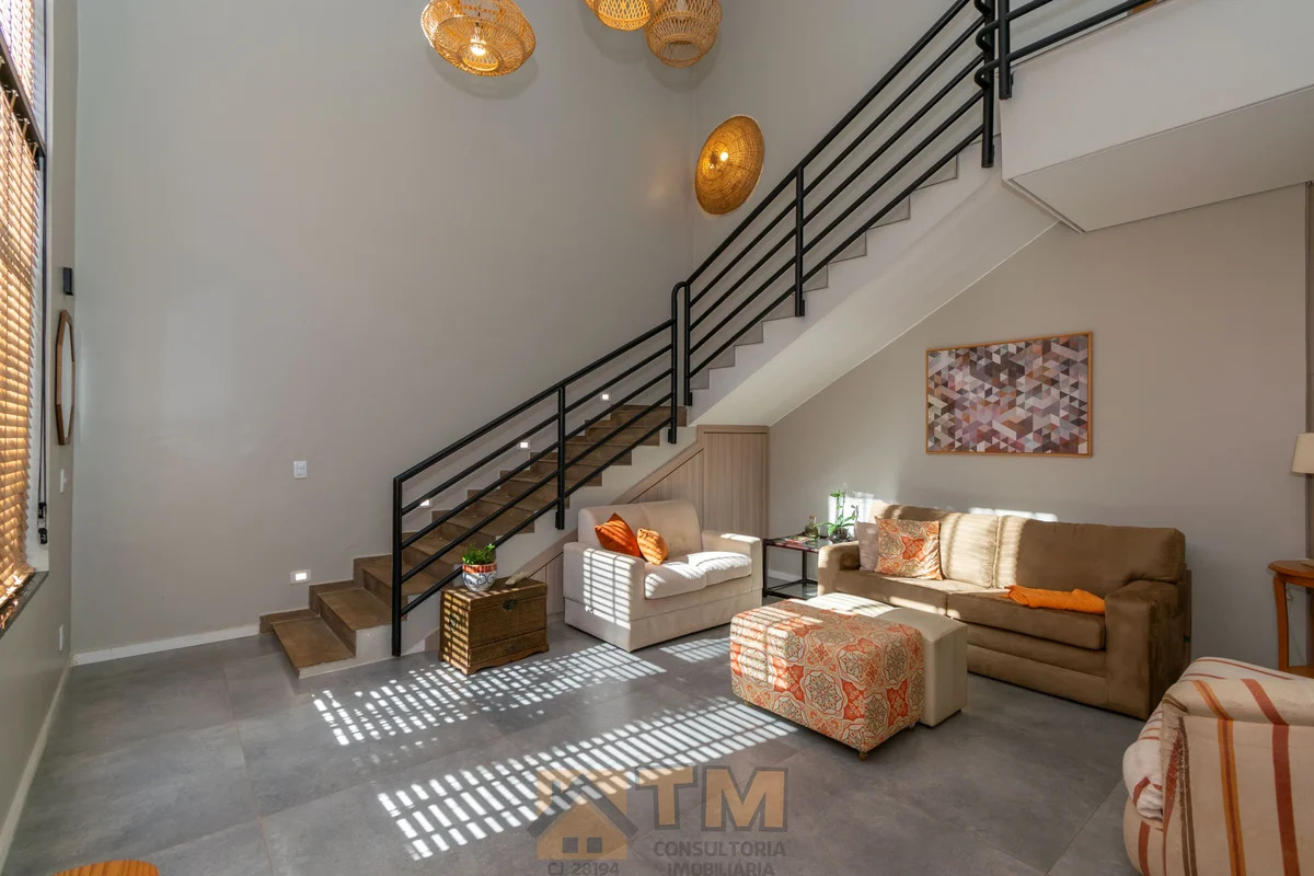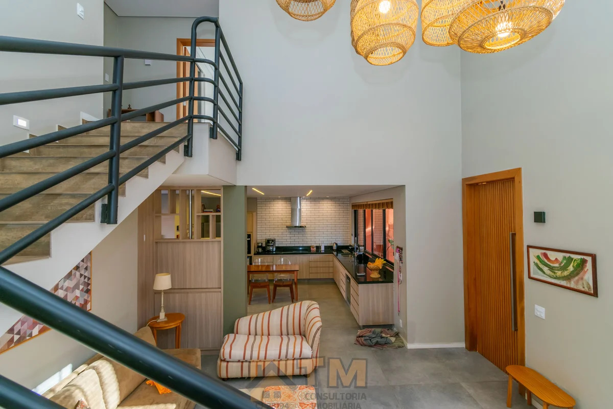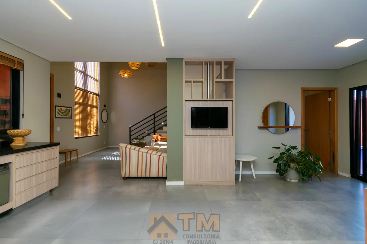 TÉRREO: – SALA DE ESTAR COM PÉ DIREITO ALTO; – COZINHA COM ARMÁRIOS PLANEJADOS, COOKTOP, COIFA E FORNO; – 1 QUARTO COM AR CONDICIONADO; – BANHEIRO COM BOX DE VIDRO; – ÁREA DE SERVIÇO COM ARMÁRIOS PLANEJADOS.